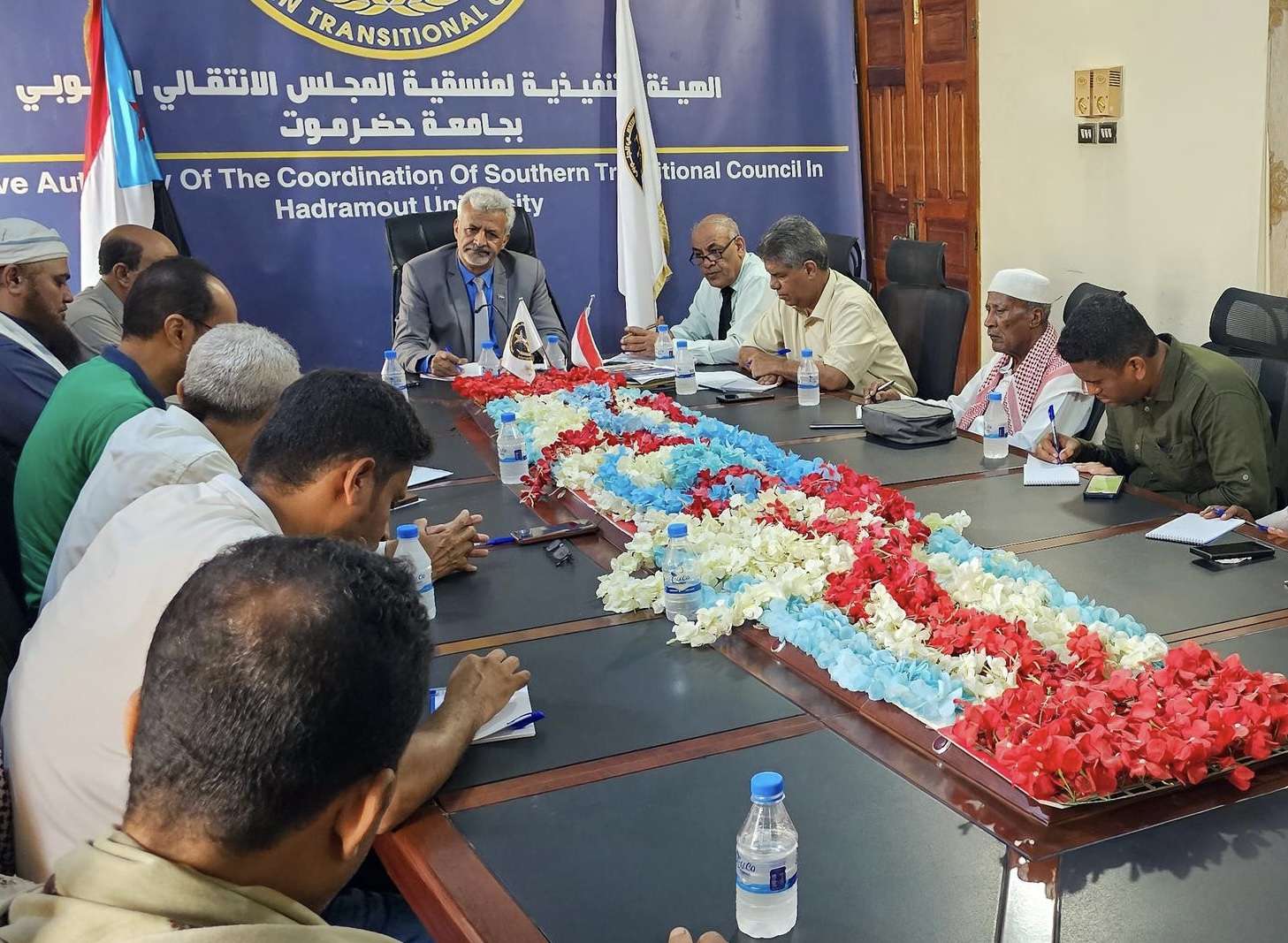 عقد فريق الرقابة والتوجيه الرئاسية، برئاسة عضو هيئة رئاسة المجلس، الدكتور عيدروس اليهري، اليوم الأحد، لقاءً موسعًا مع النقابات الأساسية في جامعة حضرموت، ضم ممثلي أعضاء هيئة التدريس، والطلاب، والموظفين، وبحضور الهيئات الإدارية لنقابة أعضاء هيئة التدريس ومساعديهم، ونقابة أعضاء هيئة التدريس المتعاقدين، ونقابة الموظفين، إضافة إلى اتحاد طلاب الجامعة.
