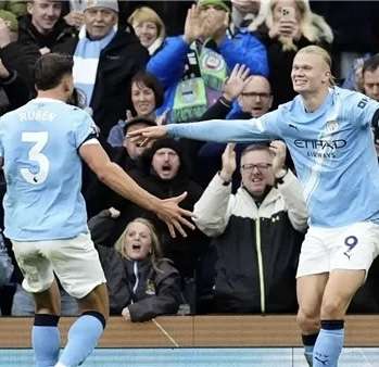 أحرز هداف مانشستر سيتي إرلينغ هالاند ثنائية ليقود فريقه لفوز ساحق 3-صفر على مانشستر يونايتد في الدوري الإنجليزي الممتاز لكرة القدم، ليمنح مدربه بيب غوارديولا حق التفاخر بالفوز بأحدث نسخة في قمة المدينة.