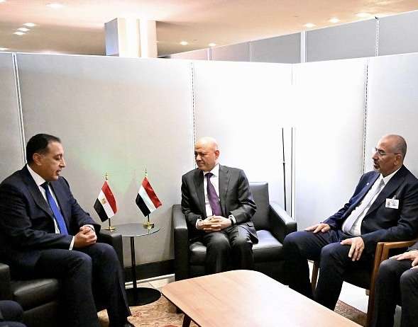 استقبل فخامة الرئيس الدكتور رشاد محمد العليمي رئيس مجلس القيادة الرئاسي، ومعه عضو المجلس اللواء عيدروس الزبيدي، اليوم الثلاثاء، رئيس مجلس الوزراء بجمهورية مصر العربية، الدكتور مصطفى مدبولي وذلك على هامش اجتماعات الجمعية العامة للأمم المتحدة.
