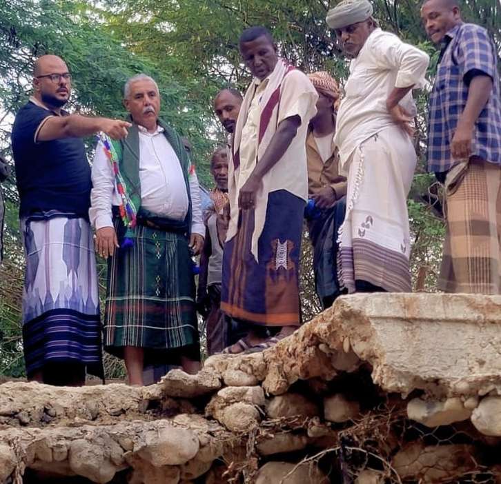 الشعيبي والجفري يتفقدان أضرار السيول في منطقة جزول بمديرية حجر