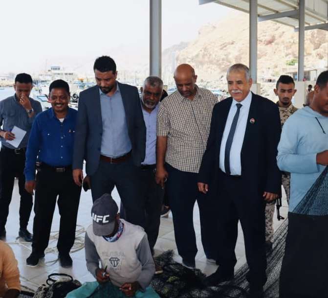 فريق التوجيه والرقابة الرئاسي يزور هيئة المصائد السمكية في البحر العربي ويطّلع على سير العمل بمرافقها في المكلا