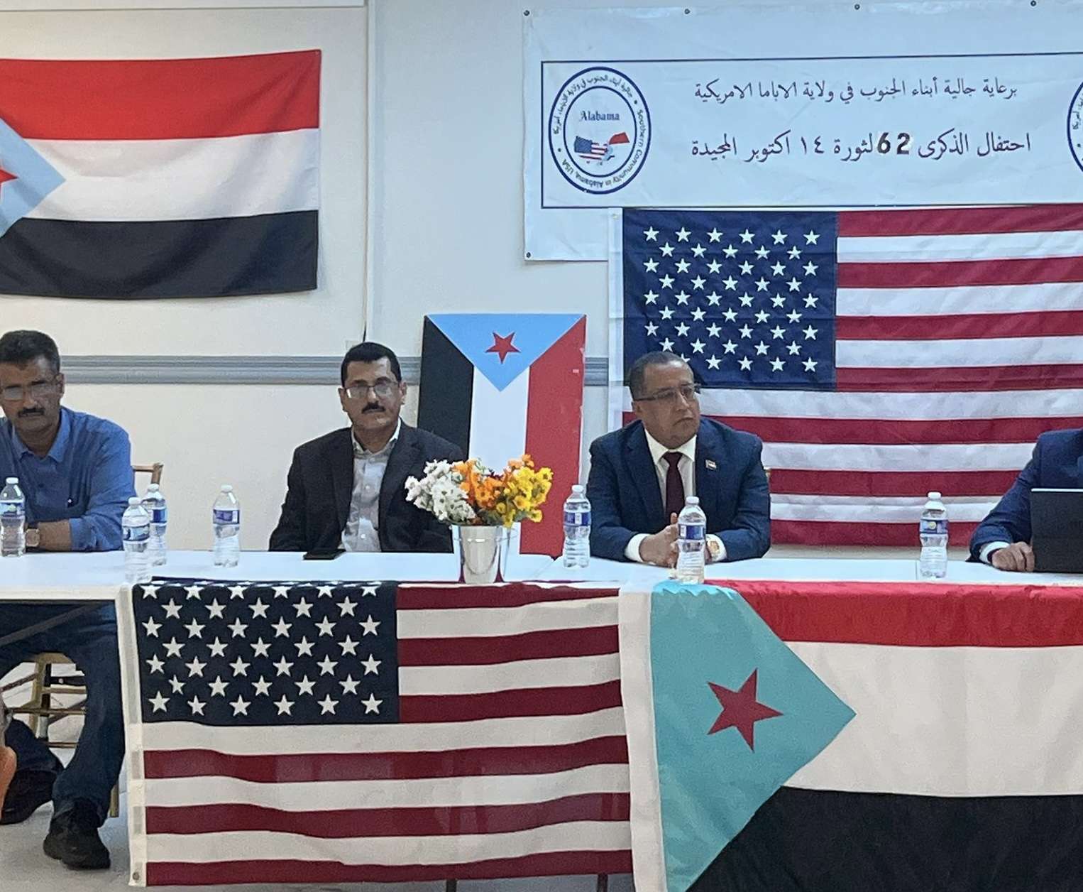 أحيت الجالية الجنوبية في ولاية ألاباما بالولايات المتحدة الأمريكية، الذكرى الـ62 لثورة 14 أكتوبر الخالدة، والذكرى الـ59 لعيد الاستقلال الوطني في 30 نوفمبر المجيد، وذلك تنفيذًا لتوجيهات الرئيس القائد عيدروس قاسم الزُبيدي، رئيس المجلس الانتقالي الجنوبي.