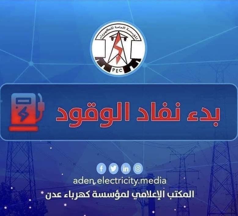 حذّرت المؤسسة العامة لكهرباء عدن من توقف كلي ووشيك لمحطات التوليد بسبب نفاد الوقود، الأمر الذي قد يؤدي إلى دخول العاصمة عدن في ظلام دامس خلال الساعات القادمة، إذا لم يتم تزويد المحطات بكميات عاجلة من الوقود.