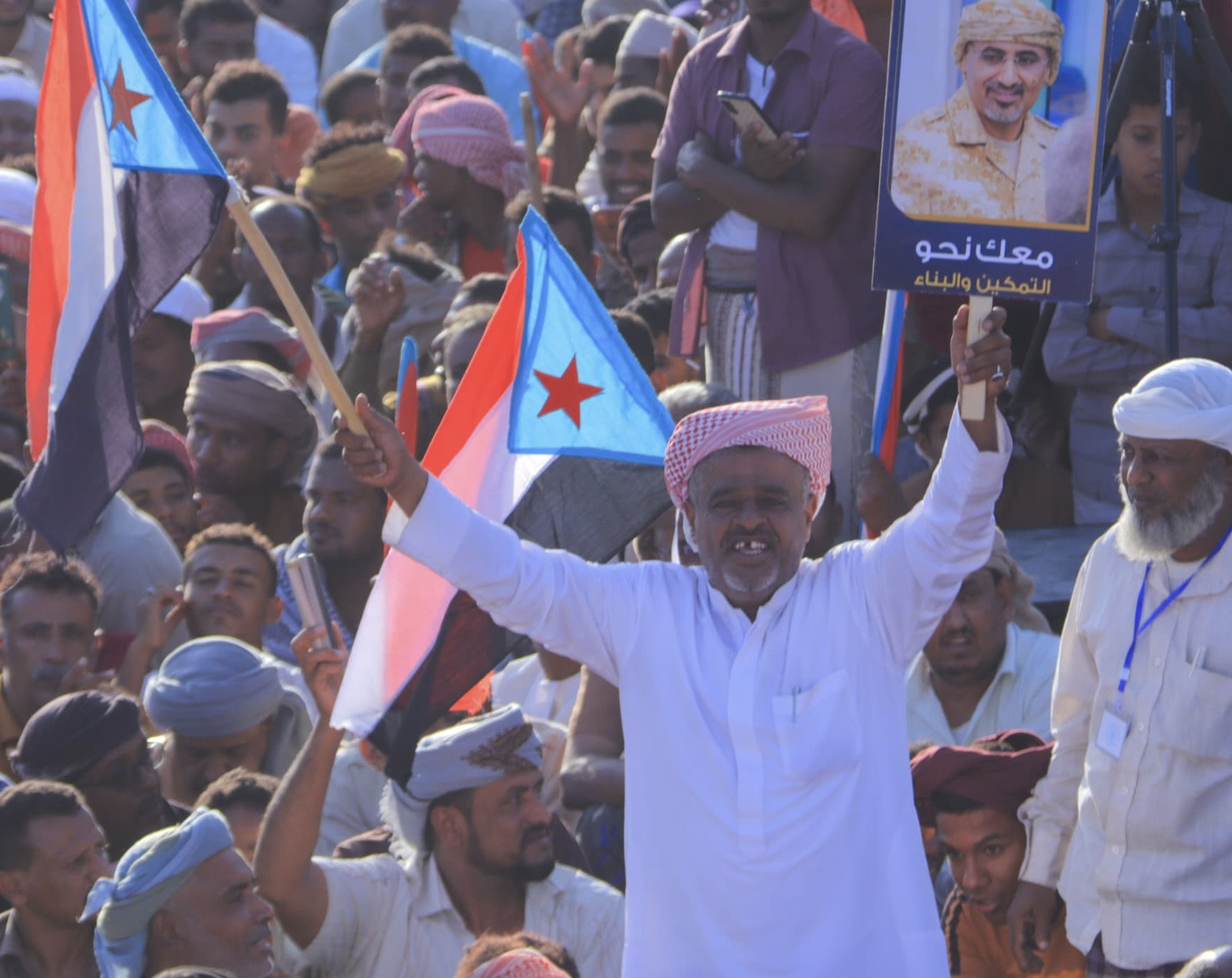 وأضاف: «نُجدد العهد والوفاء والتفويض لقيادتنا السياسية ممثلة بالرئيس القائد عيدروس بن قاسم الزبيدي، ونؤكد أننا على العهد ثابتون وصامدون. هذا الشعب الجبار هو المخزون الاستراتيجي الذي لا ينضب، ومحزم القوة الذي لا ينفد. امضوا بثقة في سبيل تحقيق أهداف ثورتنا وإعلان دولتنا الجنوبية الفيدرالية، فشعب الجنوب معكم في السلم أو الحرب أو التفاوض».