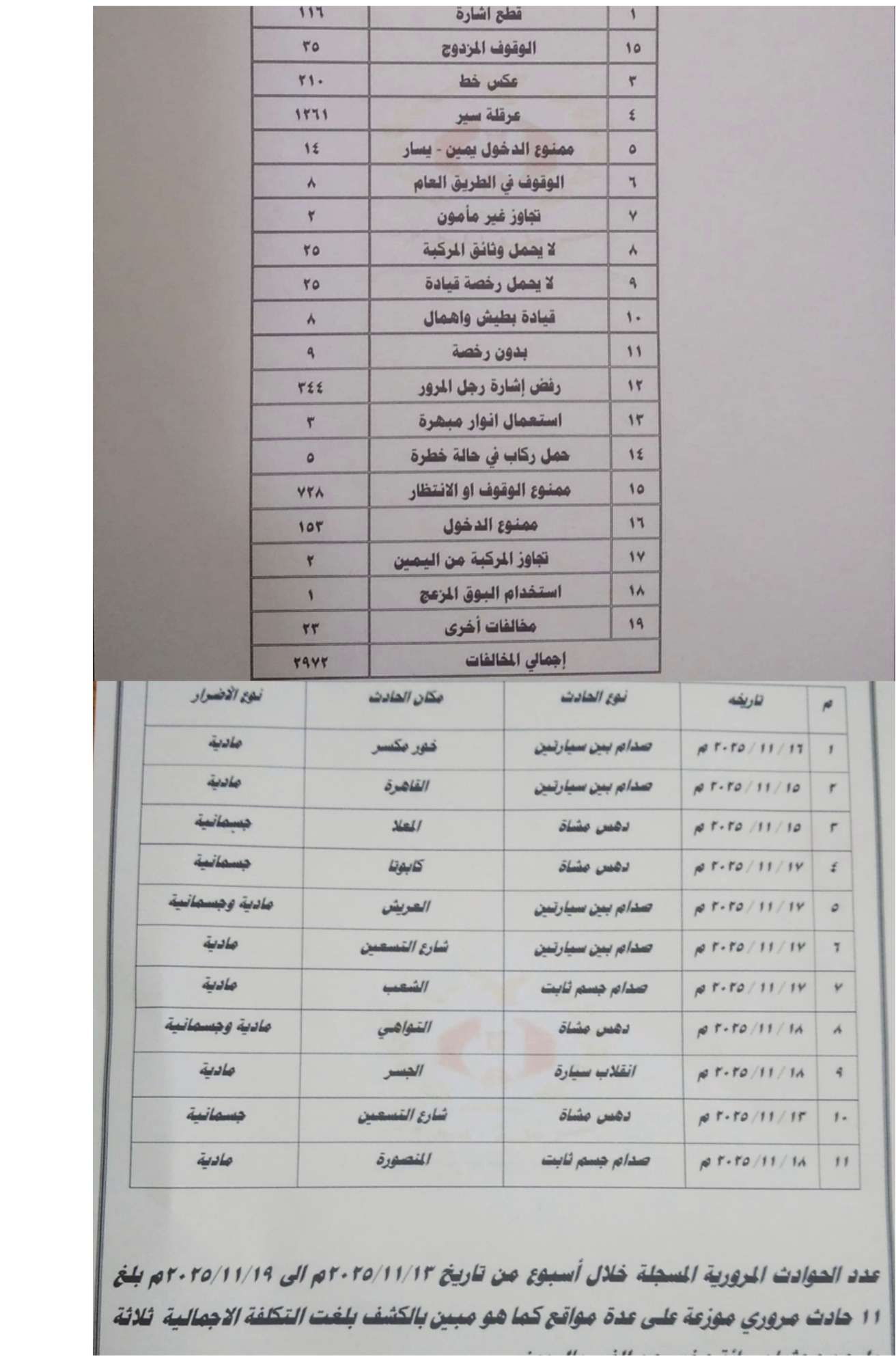 وخلال الفترة ذاتها، شهدت العاصمة 11 حادثاً مرورياً أسفرت عن إصابات تفاوتت بين الطفيفة والمتوسطة، إضافة إلى خسائر مادية قُدّرت بـ ثلاثة ملايين وثمانمائة وخمسين ألف ريال يمني.