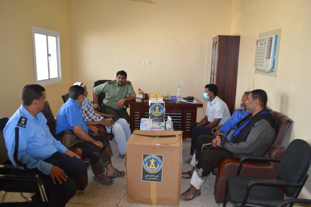 والتقت اللجنة التي مثلها عوض أحمد بن جميل، عضو الجمعية الوطنية، رئيس اللجنة، والدكتور يسلم علي باوزير، عضو اللجنة، المقدم صلاح سالم بن دويس العوبثاني، والملازم فيصل اليزيدي مدير الإمداد والتموين، وعددا آخر من قياداتها، واطلعت منهم على احتياجاتهم من مستلزمات الحماية ضد فيروس كورونا ، وقدمت للإدارة دفعة من المعققمات والكمامات وغيرها من مستلزمات الحماية.