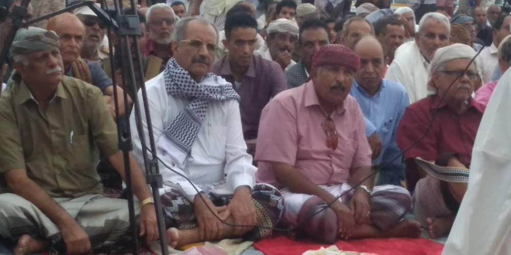 الجعدي والوالي يؤديان صلاة عيد الأضحى مع جموع المعتصمين من منتسبي الجيش والأمن الجنوبيين بالبريقة