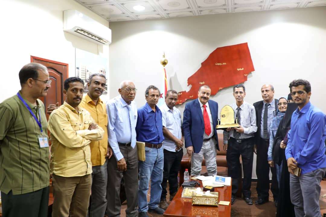 تسلم اللواء الركن أحمد سعيد بن بريك، القائم بأعمال رئيس المجلس الانتقالي الجنوبي، رئيس الجمعية الوطنية، صباح اليوم، في مقر الجمعية، درع الوفاء والعرفان لعام 2019م، من اتحاد أدباء وكتاب الجنوب برئاسة الدكتور جنيد محمد الجنيد.