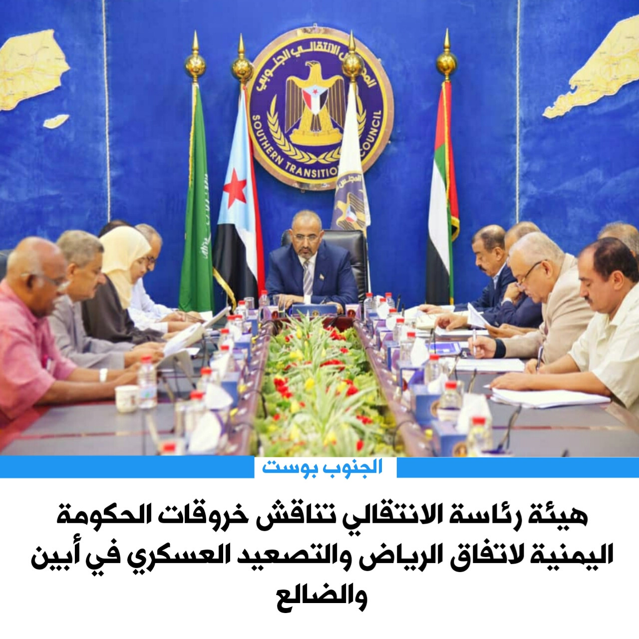 هيئة رئاسة الانتقالي تناقش خروقات الحكومة اليمنية لاتفاق الرياض والتصعيد العسكري في أبين والضالع