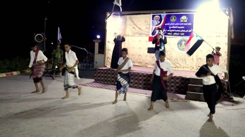 وفي الاحتفالية التي حضرتها المحامية نيران سوقي عضو هيئة رئاسة المجلس الانتقالي الجنوبي، نائبة رئيس الجمعية الوطنية، قُدمت العديد من الفقرات الفنية الغنائية والرقصات الشعبية والفلكلورية والعرروض المسرحية الفكاهية الرائعة .
