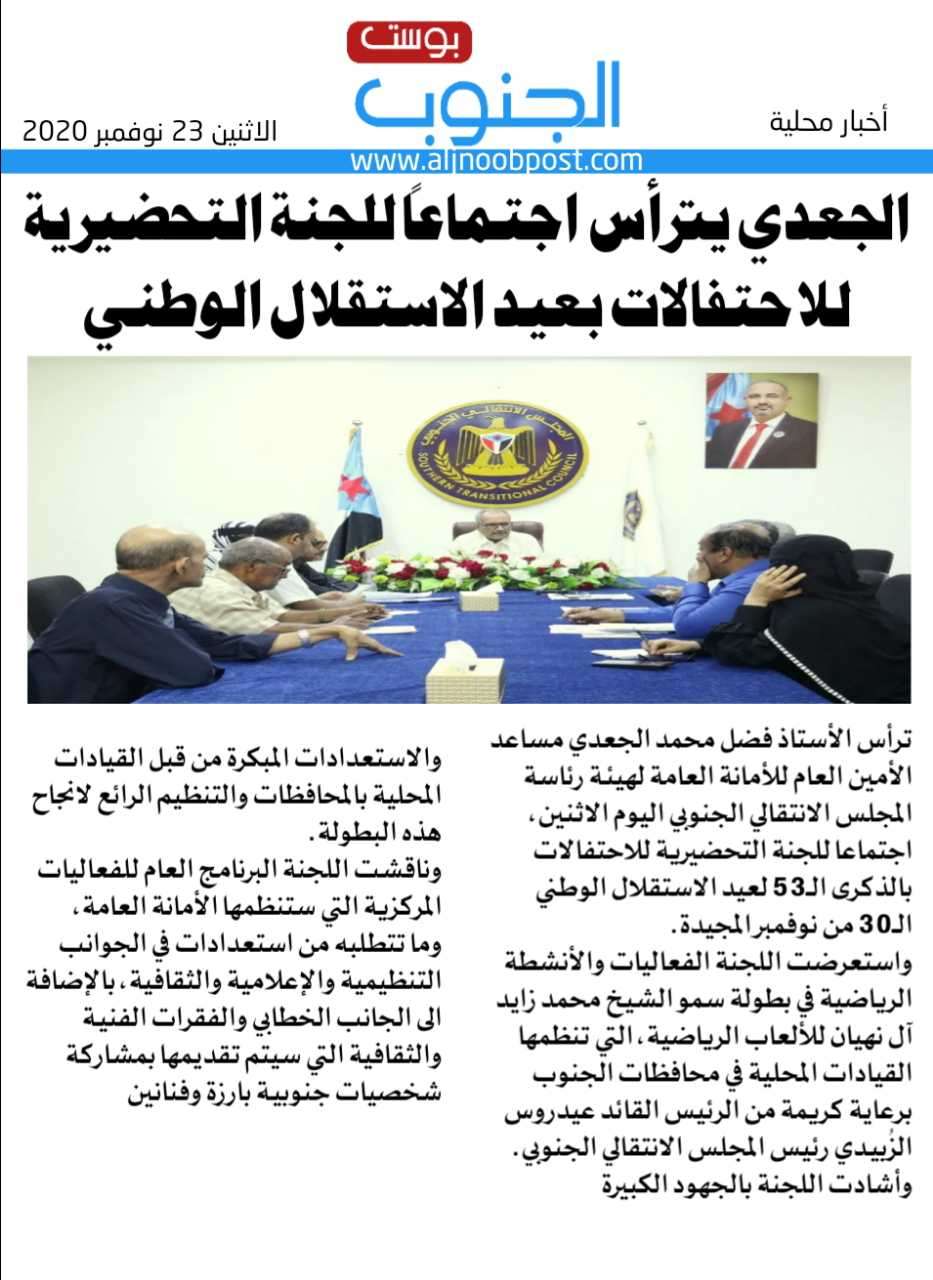 الجعدي يترأس اجتماعاً للجنة التحضيرية للاحتفالات بعيد الاستقلال الوطني