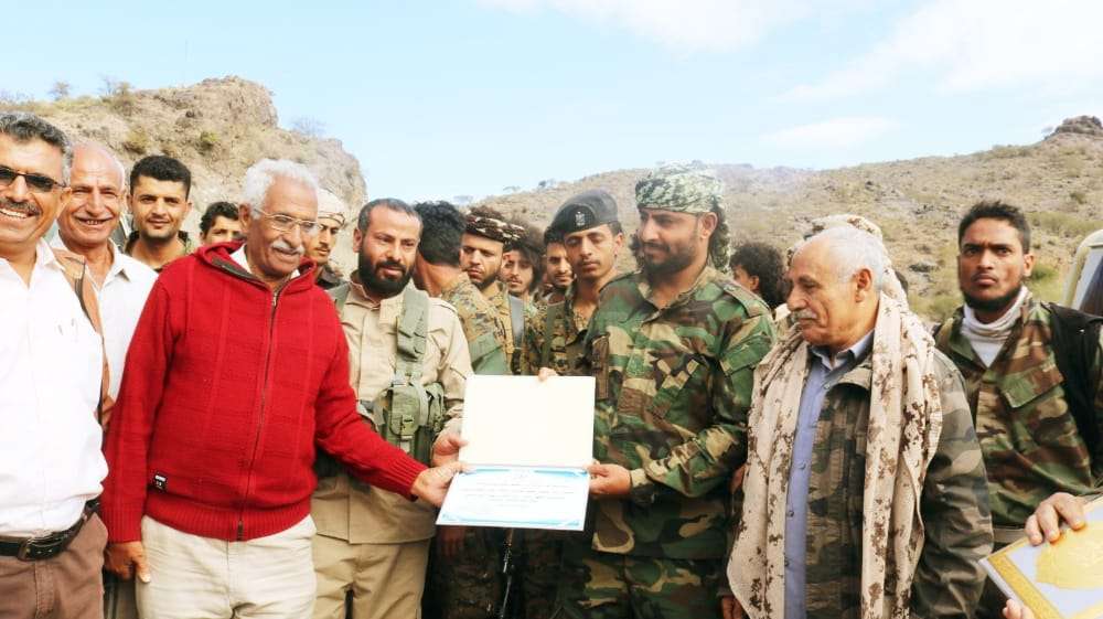 وشكر قائد القطاع الثاني نادر محمد مقبل قيادة الحزام الأمني ممثلة بالعميد احمد قائد القبه و ورئيس المجلس الانتقالي العميد / عبدالله مهدي في الضالع على اهتمامهم والجهود التي يبذولها في شتى المجالات.