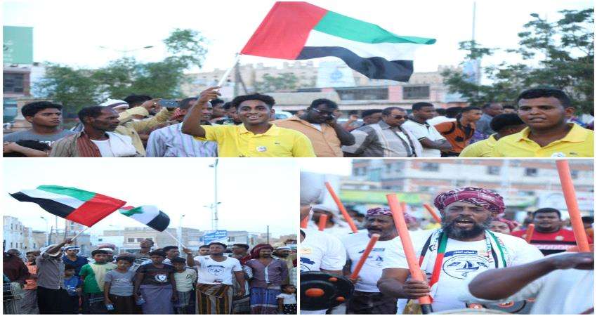 وعبر أبناء مدينة الشحر في الاحتفالية عن شكرهم وتقديرهم لدولة الإمارات العربية المتحدة الشقيقة على دورها الكبير الذي قدمته في حضرموت من خدمات إنسانية وتنموية , و وفاءاً منهم لكل هذا , قاموا بالتعبير عنه في الاحتفالية التي شهدت اجواء فرائحيه بهيجة في الساحة العامة بالمدينة .