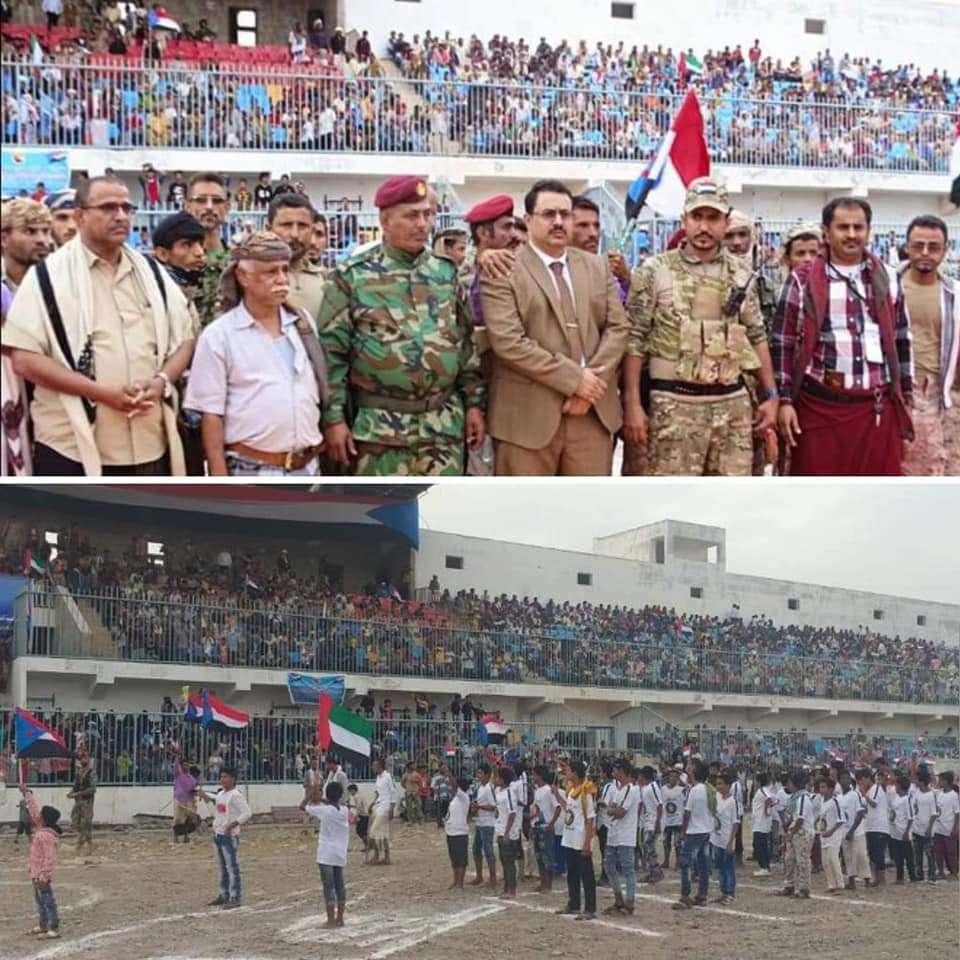 فعاليات متنوعة وعروض كرنفالية عسكرية وطلابية أقامتها القيادة المحلية للمجلس الانتقالي بمحافظة لحج تتويجًا لمباريات بطولة صاحب السمو الشيخ محمد بن زايد آل نهيان، لكرة القدم التي أقيمت برعاية كريمة من الرئيس القائد عيدروس قاسم الزُبيدي، رئيس المجلس الانتقالي الجنوبي احتفاءً بالذكرى الـ53 للاستقلال الوطني الـ30 من نوفمبر المجيد .