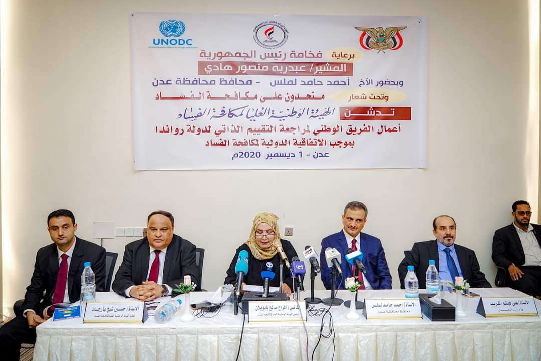 هذا وكانت رئيسة الهيئة العليا لمكافحة الفساد القاضية أفراح بادويلان، قد افتتحت فعالية التدشين بكلمة أكدت فيها أن اختيار وتكليف بلادنا من قبل الأمم المتحدة للقيام بمراجعة تقرير التقييم الذاتي لدولة رواندا، خاصة في ظل ظروف الحرب التي تعيشها بلادنا وتداعياتها الصعبة على كافة المجالات الحياتية والإنسانية، يؤكد بما لا يدع مجالاً للشك أن بلادنا ممثلة بالهيئة وشركائها استطاعت كسب ثقة المجتمع الدولي والإرادة الدولية ممثلة بمنظمة الأمم المتحدة، رغم كل تلك الظروف.