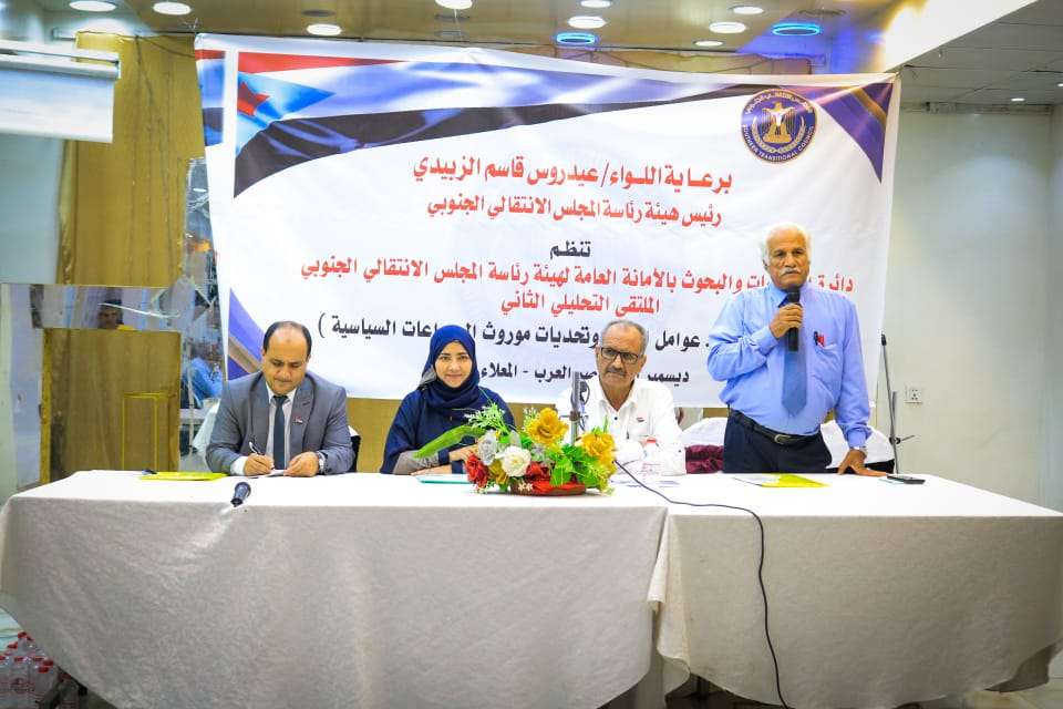 نظمت دائرة الدراسات و البحوث في الأمانة العامة لهيئة رئاسة المجلس الانتقالي، صباح اليوم الأربعاء، في العاصمة عدن، الملتقى التحليلي الثاني حمل عنوان " حكومة المناصفة .. عوامل النجاح و تحديات موروث الصراع السياسي "، برعاية كريمة من الرئيس القائد عيدروس الزُبيدي رئيس المجلس الانتقالي الجنوبي.
