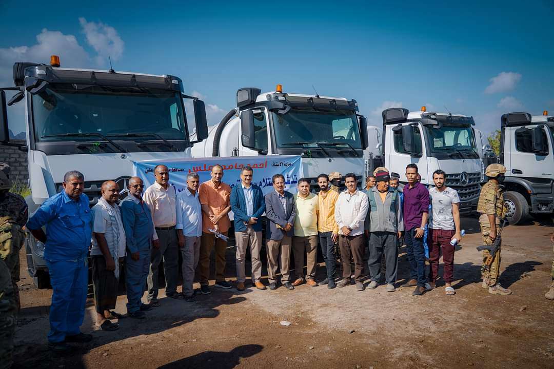 المحافظ لملس يدشن استلام 6 سيارات جديدة لشبكة الصرف الصحي بعدن