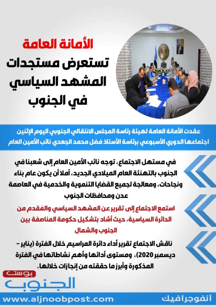 #أنفوجرافيك: الأمانة العامة تستعرض مستجدات المشهد السياسي في الجنوب