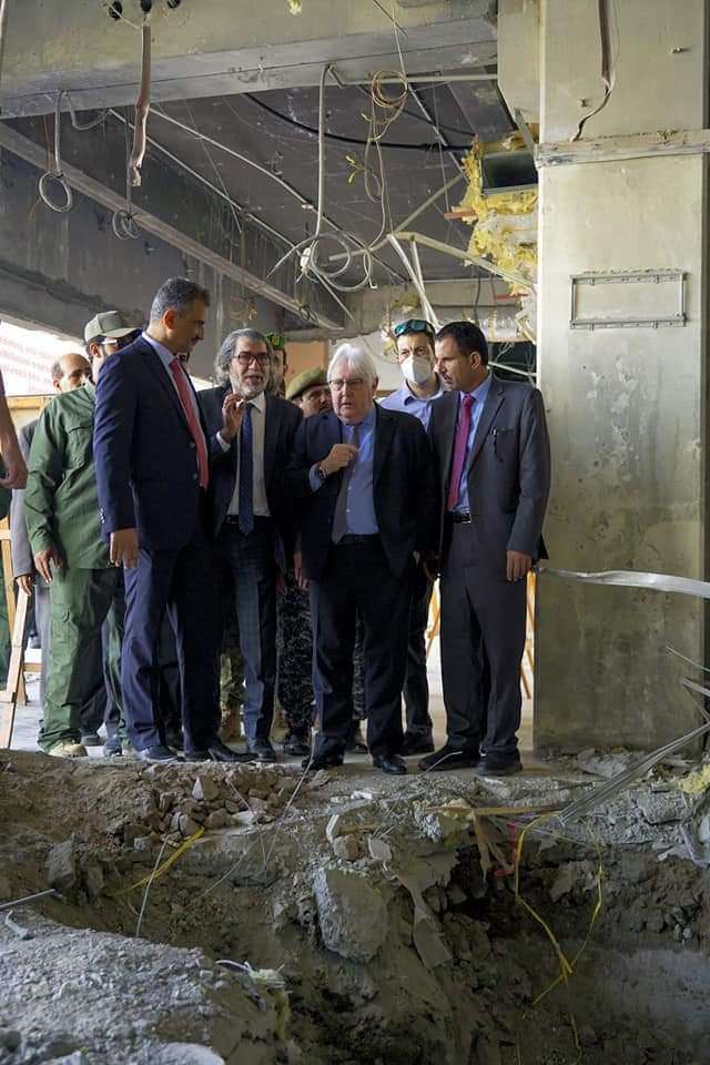 وخلال الاستقبال اطلع لملس غريفيث على آثار التفجيرات التي استهدفت المطار .