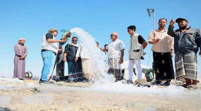 الهلال الأحمر الإماراتي يدشن افتتاح بئرين مياه في حقل الدكداك بمديرية الشحر