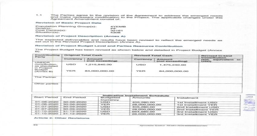 كشفت صور ضوئية لعقود مسربة بين المفوضية السامية للأمم المتحدة لشؤون اللاجئين، ومليشيا الحوثي الإرهابية عن دعم المنظمة الأممية للمليشيا بخمسة ملايين ونصف المليون ريال سعودي.