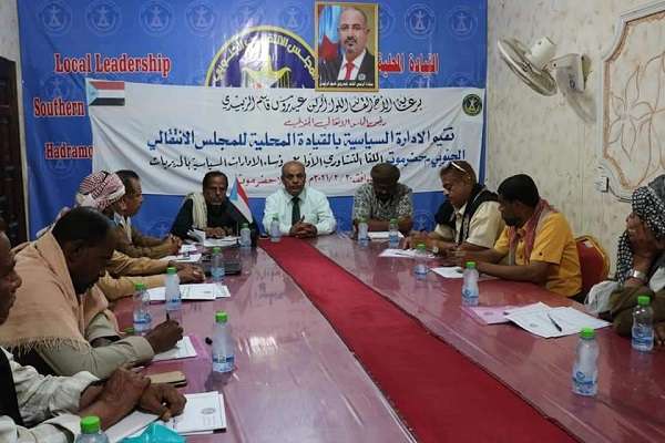 أقامت الإدارة السياسية بالهيئة التنفيذية للقيادة المحلية للمجلس الانتقالي الجنوبي بمحافظة حضرموت، اليوم السبت، بمقر الهيئة بالمكلا ، اللقاء التشاوري الأول لمديري الإدارات السياسية بالهيئات التنفيذية للقيادات المحلية للمجلس في مديريات الساحل.