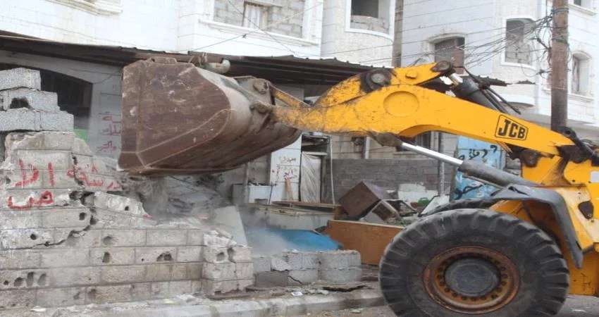 عدن.. حملة لإزالة البناء العشوائي في مديرية خور مكسر