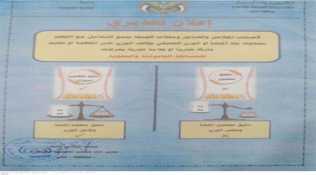 إعلان تحذيري لأصحاب المطاحن ومحلات الجملة التجارية بعدن