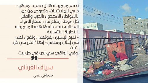 وأكد الغرباني أن مجموعة هائل سعيد أنعم تذبح اليمنيين بقوتهم، وتقول لهم - في إعلان رمضاني- إنها ”الخير في كل بيت“، وفي الواقع؛ هي لص في كل بيت».