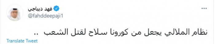 وكتب في تغريدة عبر "تويتر" : "نظام الملالي يجعل من كورونا سلاح لقتل الشعب".