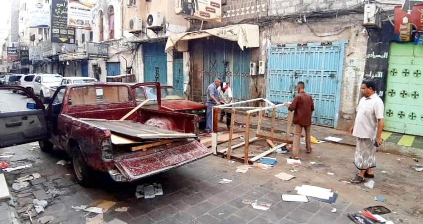بالصور.. حملات نظافة وإزالة البسطات من اسواق كريتر بعدن