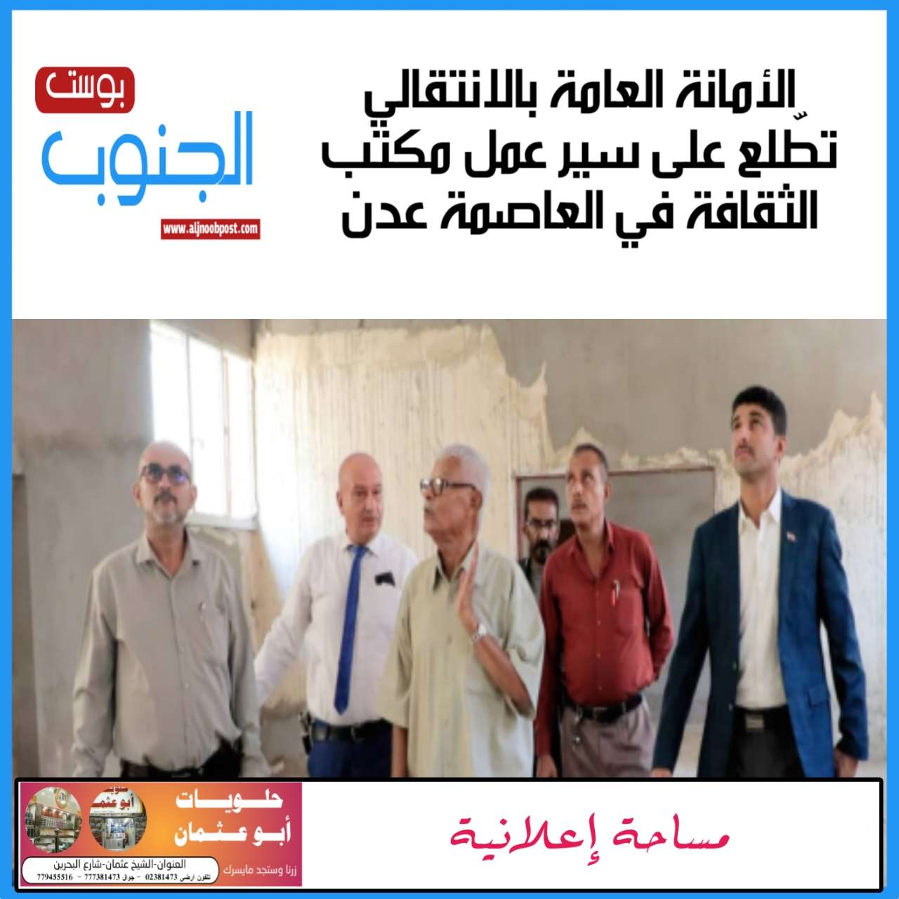 الأمانة العامة بالانتقالي تطّلع على سير عمل مكتب الثقافة في العاصمة عدن